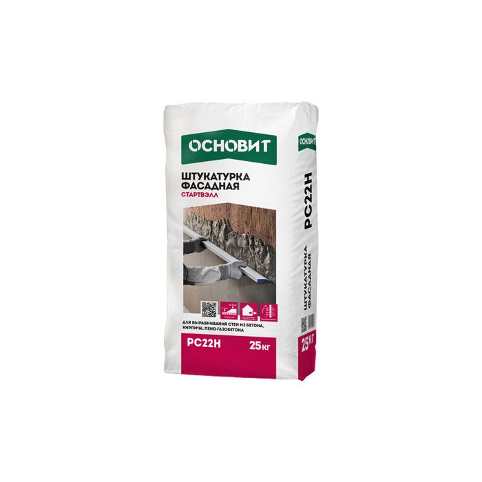 Цементная штукатурка ОСНОВИТ СТАРТВЭЛЛ РС22 Н предназначена для выравнивания стен из бетона, кирпича и ячеистого бетона.